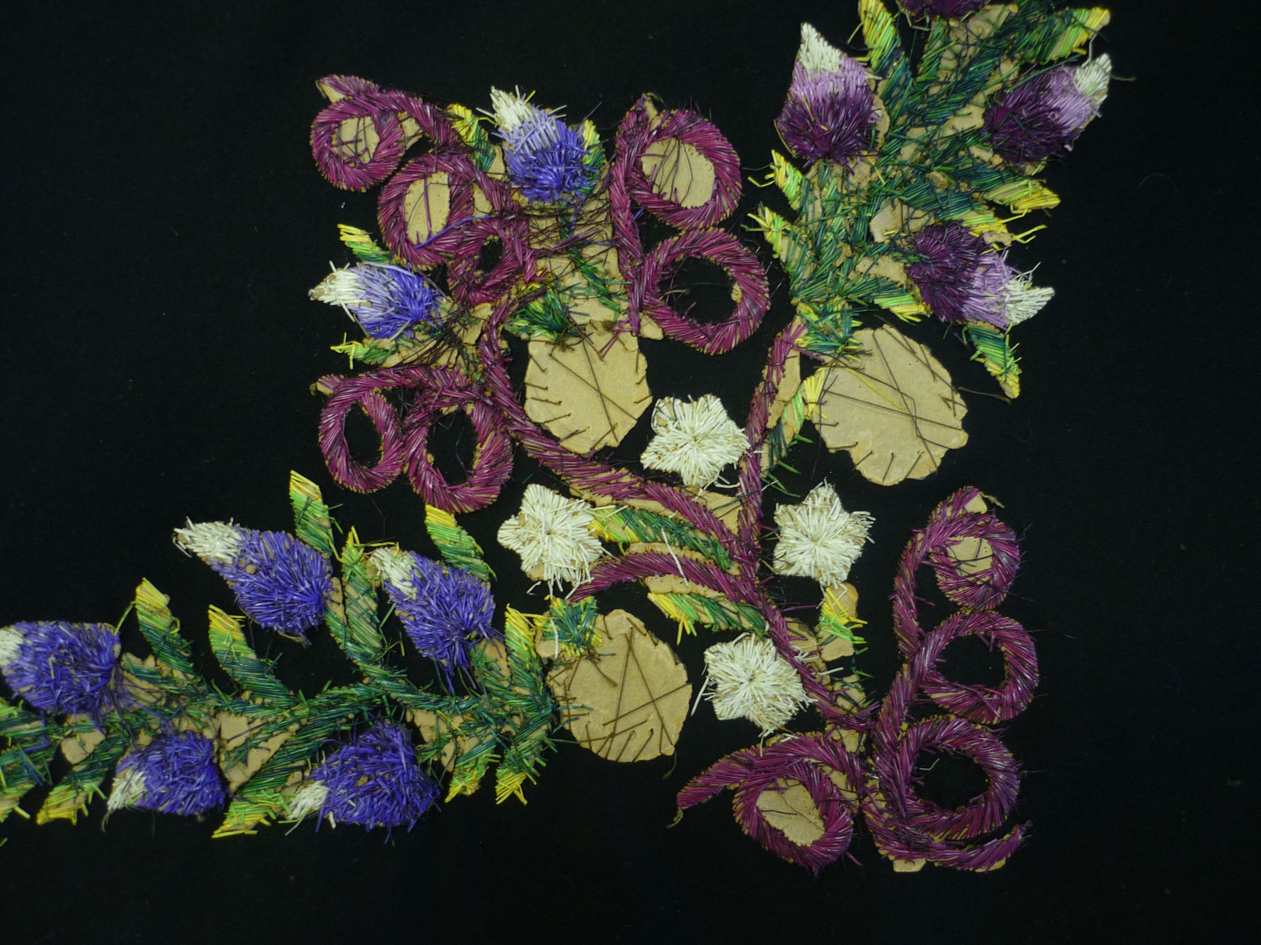 I went to the national archive at Kew where there is a collection of Huguenot silks and laces. The paper patterns are still partly visible on the reverse.