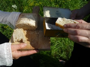 This seems to parallel what is happening to Portugal at the moment, where the natural resources of the country are less valued, and globalised industries mean that young people with skills and talents are going elsewhere or working for a pittance. Not to romanticise the life of a salt worker – as we follow the guided route walk for 3 hours in the baking sun, we pass one hut where the workers invite us to join them for lunch, and give us freshly caught and grilled ‘Carapau’ with bread and wine. The guys are very friendly and despite our mutual lack of language we exchange a few words. They go and fish in the early morning and then come to work on the salinas, and its hot, heavy work. Back in the museum, Cristina shows us the 35kg baskets women used to cart back to the warehouses on their heads. We can’t even lift it.